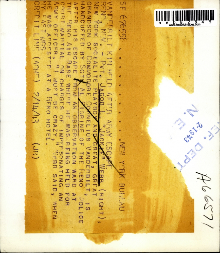 1943 Press Photo Socialite Jackie Webb handcuffed by Al Fiorine in Reno