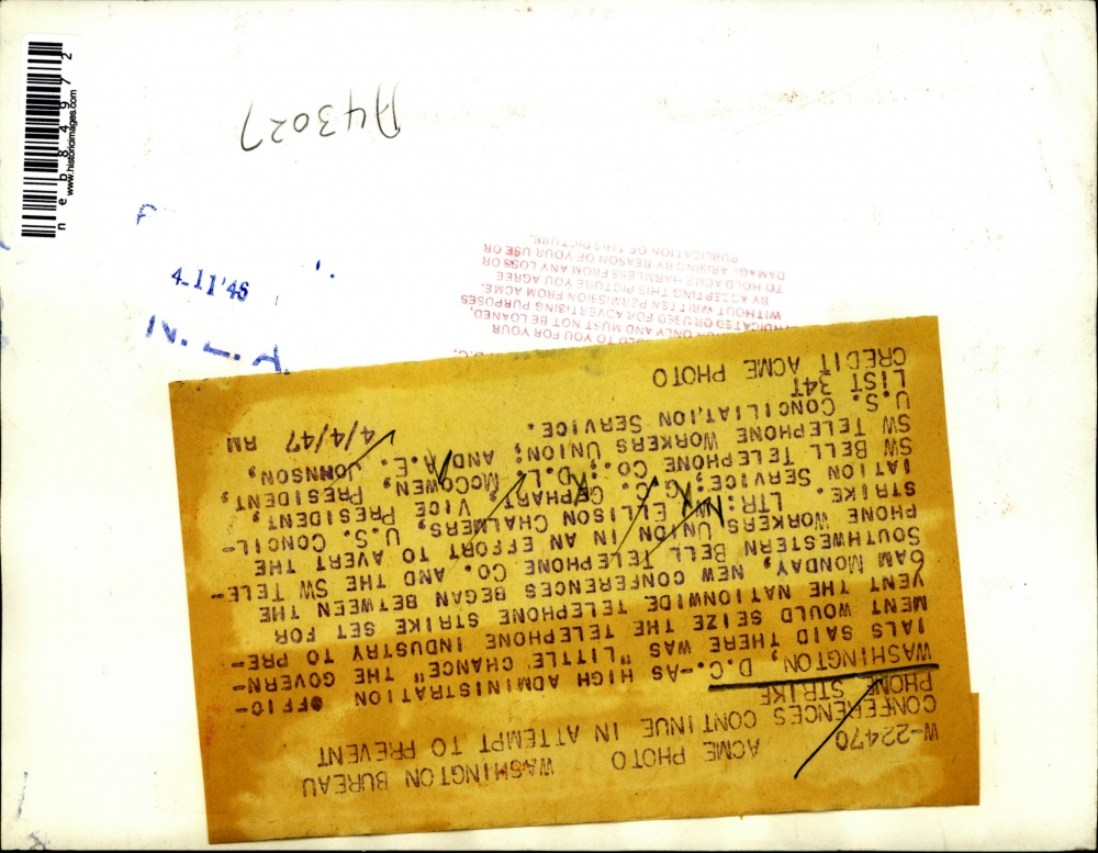 1948 Press Photo Conferences continue in attempt to prevent phone strike