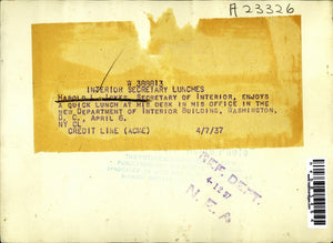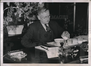 1937 Press Photo Secretary of the Interior Harold Ickes Eating Lunch at His Desk