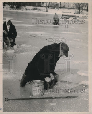 1953 Press Photo Man ice fishing in Sandusky Bay - neb86860