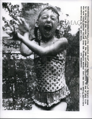 1959 Press Photo Detroit, Mich Debboe Bowman age 7 cools off in 90degree heat