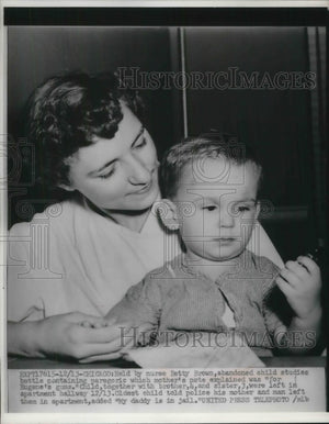 1952 Press Photo Abandoned Child Held By Nurse Betty Brown Holds Bottle From Mom
