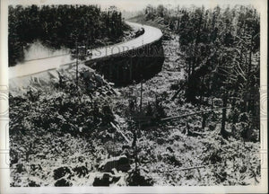 Photo Credit-ACME & NEA 1000s of miles from supply bases, roads, landing fields dock facilities, and modern Army posts are appearing in this unchartered wilderness. Despite inadequate transportation, sub-zero temperatures, and scarcity of skilled labor and construction materials, the work progresses at top speed. Photo shows heavy trestle bridge built by engineers to improve the grade of a service road. Road construction was one of the biggest problems in preparing our Alaskan defenses.