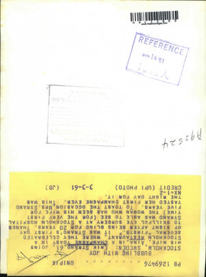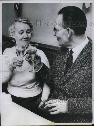 1961 Press Photo Formerly Blind Erik Strand Having Champagne with Wife Aina