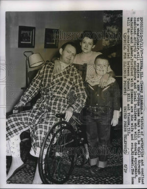 1957 Press Photo Arthritis Victim Dewey Simmons With Family In Wheelchair & Robe