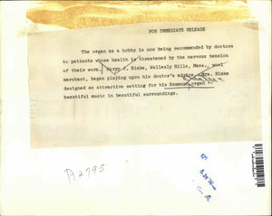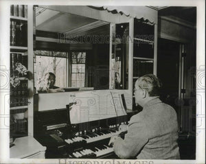 1950 Press Photo Harry Blake Plays Hammond Organ According to Doctors Advice