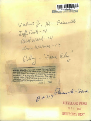 1968 Press Photo Heroes Jeff Conte And Ann Warner Menaced By School Play Villain