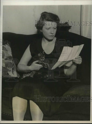 1931 Press Photo Mrs. Terry Donoghue With Cat Refuses To Vacate Her Apartment