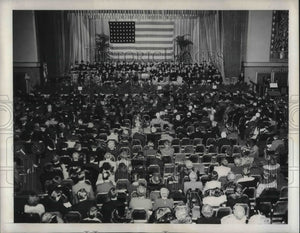 A crowd of people attending a meeting at New York Citys Waldorf-Astoria Hotel