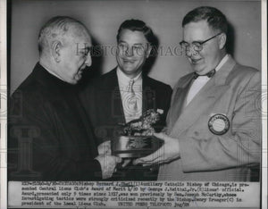 1954 Press Photo Chicago Catholic Bishop Bernard Sheil Given Lions Club Award