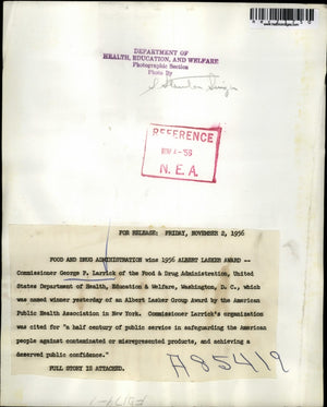 1956 Press Photo Commissioner George Larrick of Food & Drug Administration