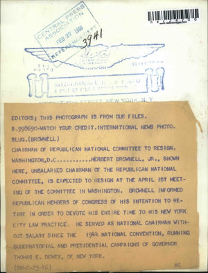 1946 Press Photo RNC Chairman Robert Brownell, Jr., to Resign
