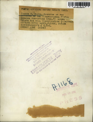 1934 Press Photo Eugene R. White, Postal Official Testifies Before Senate