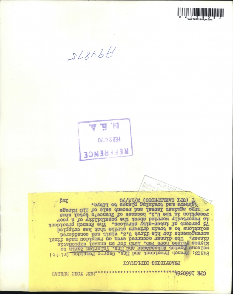 1970 Press Photo Pres. and Mrs. George Pomidou greet Russian guest while he