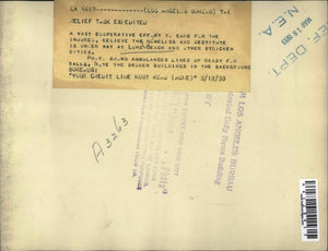 1933 Press Photo Emergency Relief Task Helps Long Beach Earthquake Victims