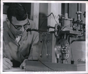 1956 Press Photo Ball Bearings Spinning Test at General Electric - nec30622