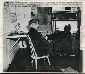 1950 Press Photo Edward Yates inspects his flooded home. Winnepeg canada