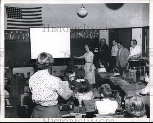 1956 Press Photo Magdalen Donnelly, 5th Grade Bay City teacher in classroom