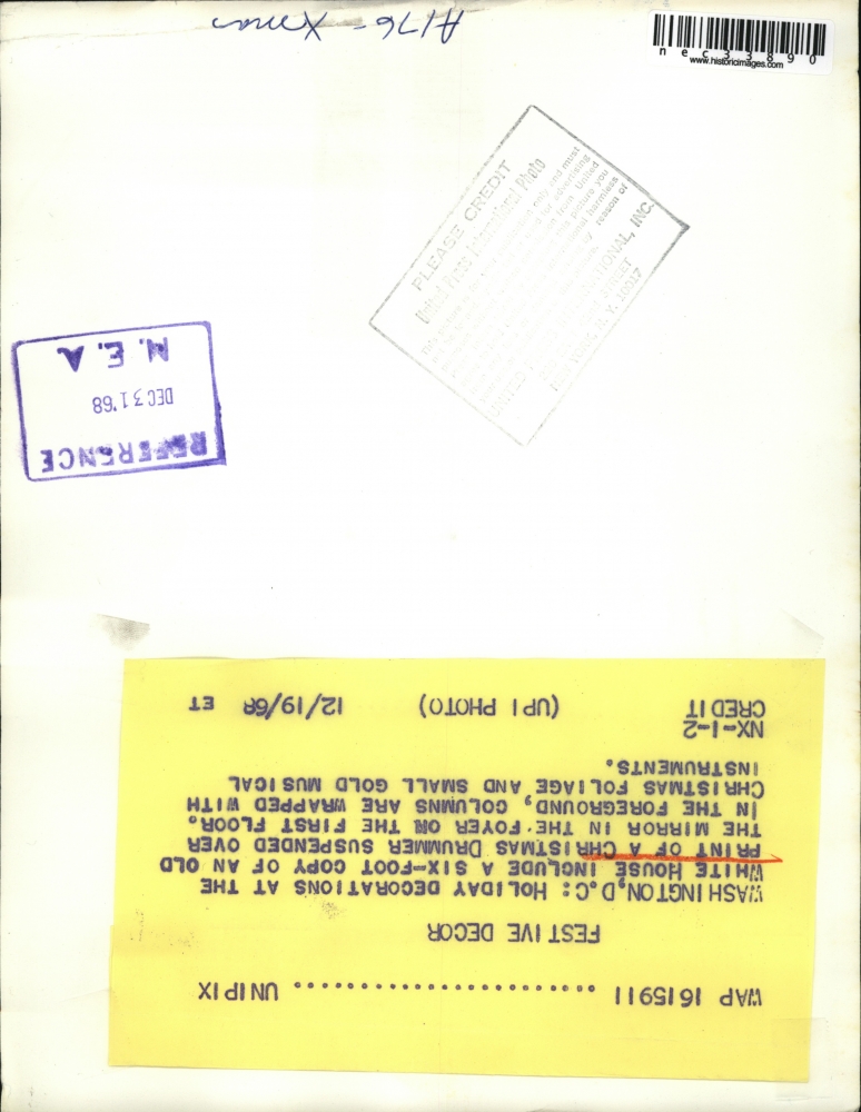 1968 Press Photo Holiday decorations at the White House. Washington DC