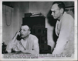 Pilot, Alva Marsh, skipper of Plane which crashed in East River makes a phone call, Co-Pilot Austin Briggs {standing) stands besides him