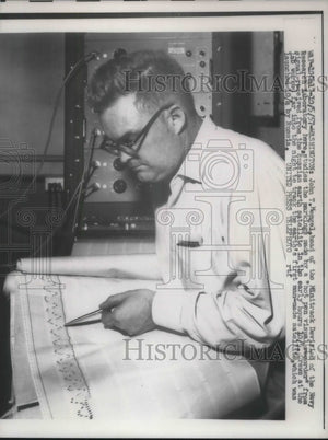1957 Press Photo John T. Mengel studies the "hot pen visual recorder" Washington