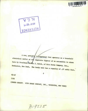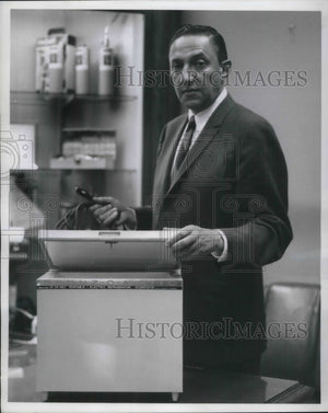 1962 Press Photo Otto Bernz Co. Inc. Pres. S. J. Reich and portable refrigerator