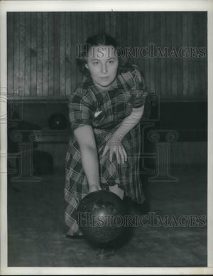 1940 Press Photo A woman at a bowling alley delivers her ball