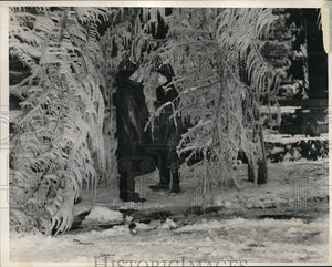 1939 Press Photo Two Firemen Under Tree Covered With Ice