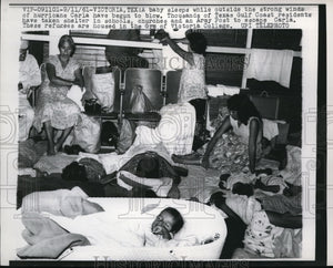 1961 Press Photo A baby sleeping during a hurricane began to blow in Texas.