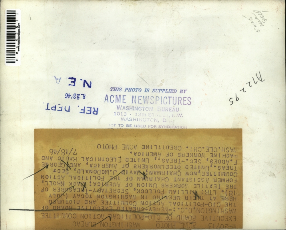 1946 Press Photo D.C. board of CIO Comm. DJ McDonald,G Addes,Wm Pllock,J Kroll