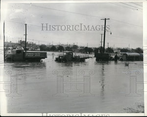 1938 Press Photo Trucks Stalled in Flood Waters in Los Angeles Due Heavy Rains