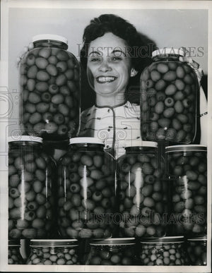 1959 Press Photo Chicago, Ill Mrs Olive Green & jars of olives Queen of Olive We
