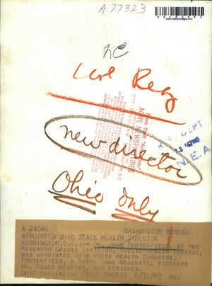 1947 Press Photo D.C. Dr John Porterfield, research grants div of Public Health