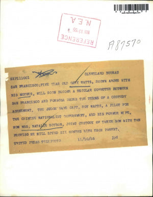 1955 Press Photo Gary Watts Child Was Subject Of International Custody Battle
