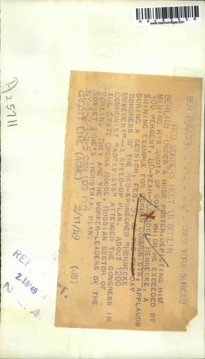 1949 Press Photo Berlin, Germany Adolph Hennecke, Communist at Congress