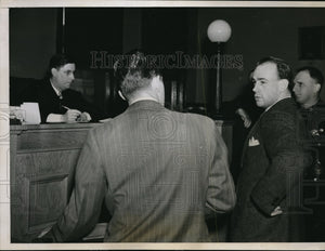 Raynond Ickes, (right), son of the Secretary of the Interior, in municipal court in Evanston, ILL. was arrested of on a speeding charge. He was fined $3 and $6 costs by judge James N. Corcoran (Left).