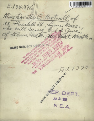 1932 Press Photo Miss Dorothy C Hartwell of Lynn,Mass. to wed Paul Gove