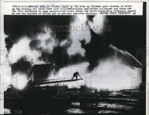 1958 Press Photo Six oil tanks exploded and collapsed in Newport News
