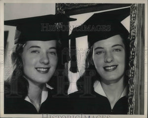 1947 Press Photo PA State College grads, Joan & Nancy Harrington