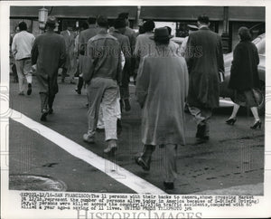 1954 Press Photo San Francisco,people cross Mkt St in a crosswalk