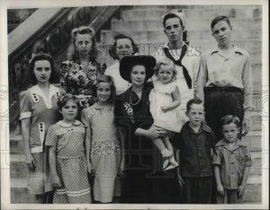 l to r; Mrs. Eileen Dennison, Joanne, Lenore, Mrs.Edwards holding Douly, Frank, Freddie, back row; Mrs. Jean Acton Phyllis and Jack Edwards member of U.S. Coast Guard.