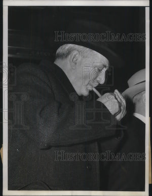1938 Press Photo William Knudsen, Pres of General motors lights up cigarette