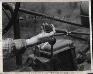 1946 Press Photo Pull of a Lever hydraulic pressure of pump of a Tractor.