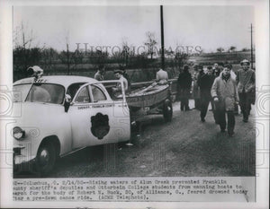 1950 Press Photo Rising Waters of Alum Creek Prevented Search for Robert Buck