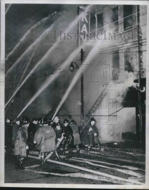 1950 Press Photo Fireman saving the lives of employees and shopper.