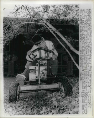 1968 Press Photo Glen Anders mows the lawn for father's return in Texas