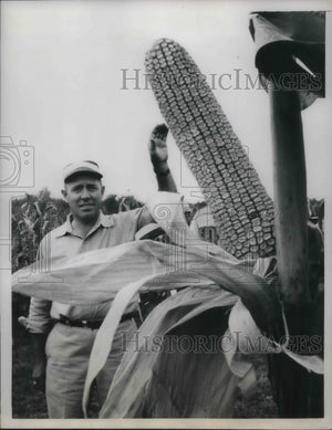 1958 Press Photo William Odom, research and plant breeding program, shows corn