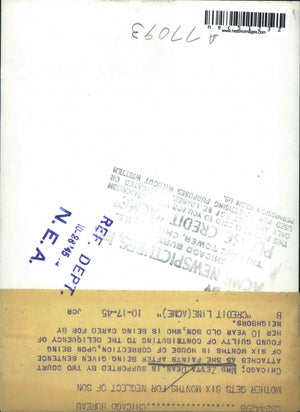 1945 Press Photo Mrs. Zetta Dean sentenced for 6 months for neglect of son