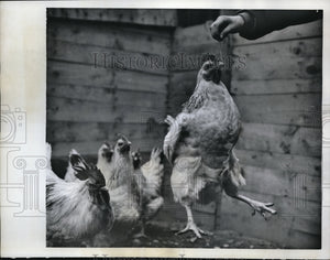 1962 Press Photo Rooster Reaching for Worm, Dagenham, England
