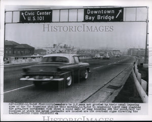 1955 Press Photo San Francisco Downtown Bay Bridge Highway